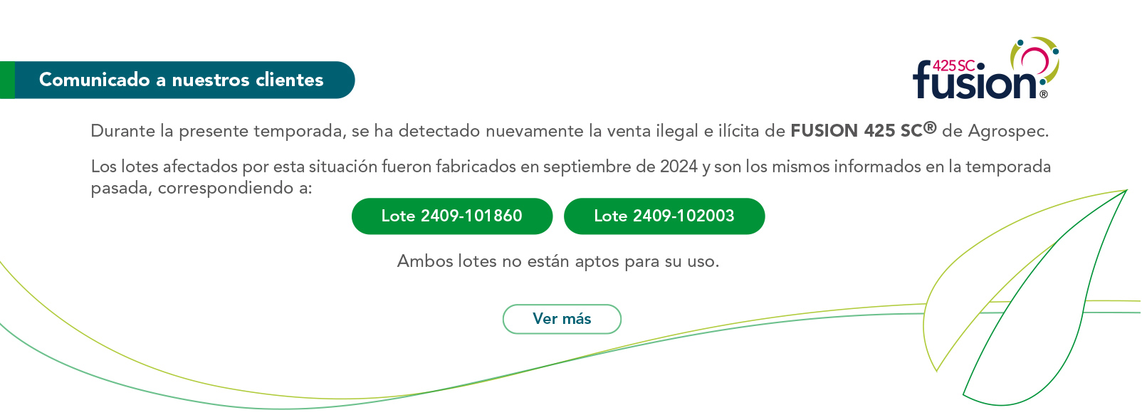 Te invitamos a revisar nuestra amplia gama de soluciones fitosanitarias, compuesta por reconocidos acaricidas, insecticidas, fungicidas y herbicidas. Además, el 2021 lanzamos con gran éxito la línea Nutra•Especialidades Agrospec desarrollada para ofrecerte alternativas balanceadas, flexibles y eficaces, siempre al costo más conveniente.